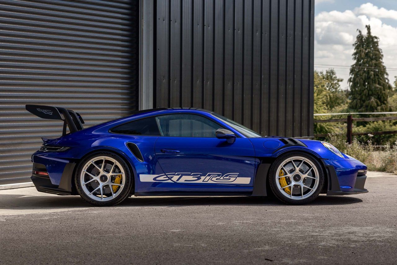 The interior is a fusion of black leather and Race-Tex, accented with Racing Yellow contrast stitching and carbon fiber details, reflecting Porsche’s perfect balance of performance and craftsmanship. Finished in the stunning San Marino Blue Metallic, this example radiates individuality and exclusivity. With delivery mileage only, it stands as a rare opportunity to own one of the finest modern RS models ever produced.